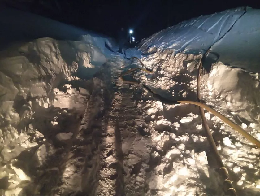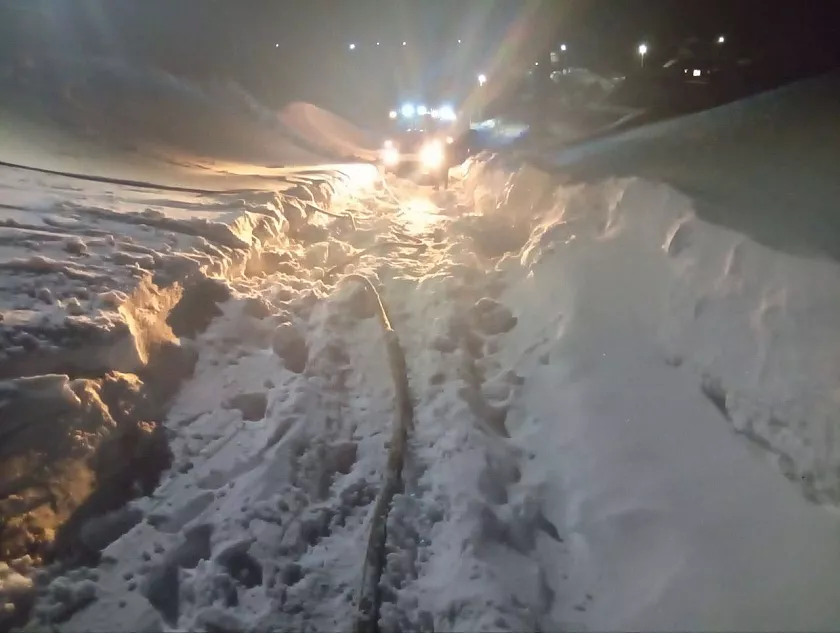 По предварительным данным, сообщение о пожаре надворной постройки на улице Нагорной поступило в экстренные службы в 21:57. При следовании к месту вызова два пожарных автомобиля не смогли самостоятельно подняться в гору из‑за снежных заносов и неочищенной проезжей части, поэтому автоцистерны остановились примерно в 200 метрах от горевшего строения.