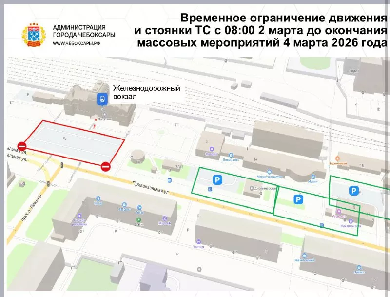 В связи с этим с 8 утра 2 марта до окончания массовых мероприятий 4 марта движение и стоянка транспорта будут ограничены на площади перед железнодорожным вокзалом в районе дома № 1 по улице Привокзальной.