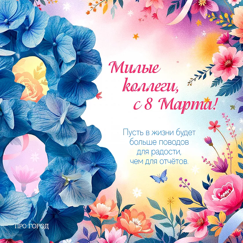 8. Коллеги, поздравляю вас с 8 Марта — желаю здоровья, спокойной головы, благодарных клиентов и адекватных дедлайнов, чтобы работа радовала, а не выматывала. Пусть в каждом дне будет достаточно сил на задачи, времени на себя и поводов для гордости за свои профессиональные результаты. Желаю, чтобы в коллективе всегда было уважение, взаимовыручка и нормальное человеческое отношение без лишней токсичности и выгорания. Пусть зарплата растет быстрее, чем список задач, а руководство ценит не только отчеты, но и реальные усилия, которые вы вкладываете каждый день. Больше приятных проектов, меньше бюрократии, пусть любые изменения идут вам только в плюс и открывают новые возможности для роста.