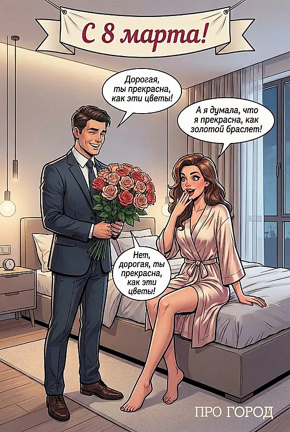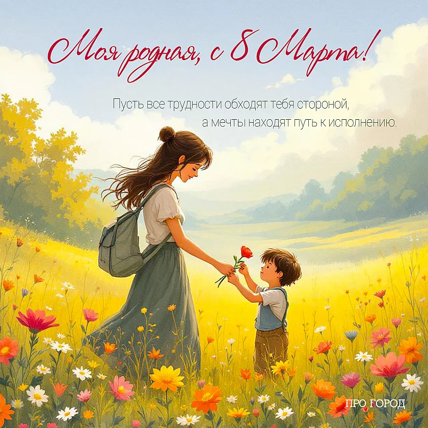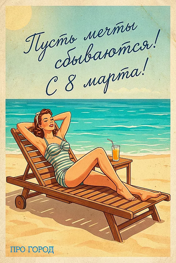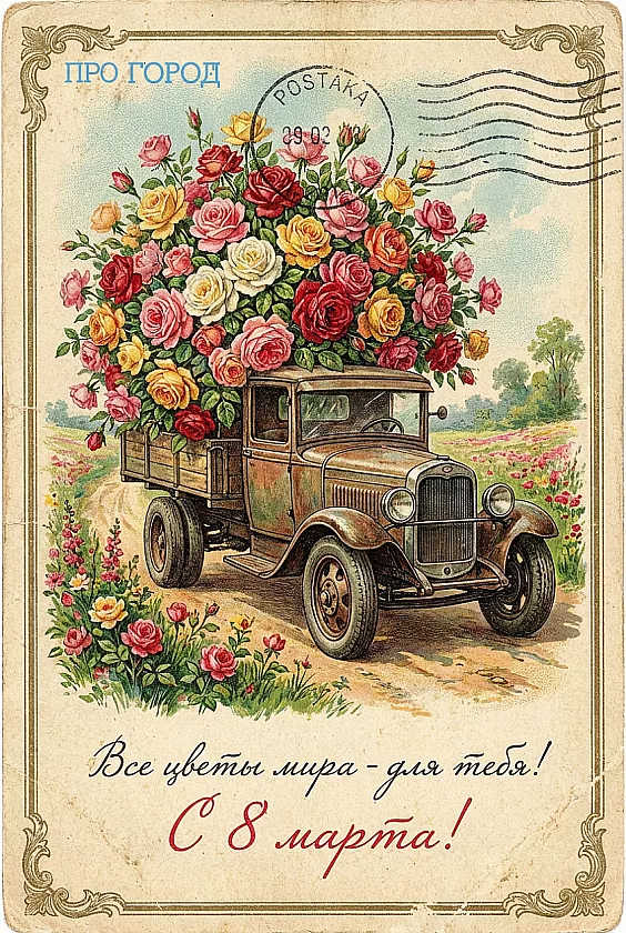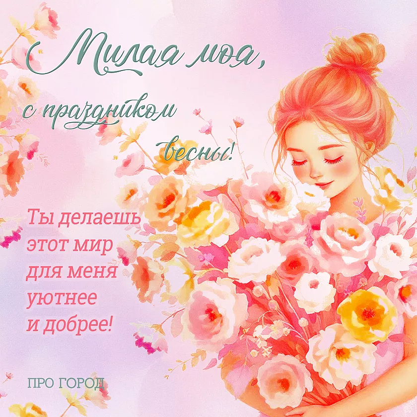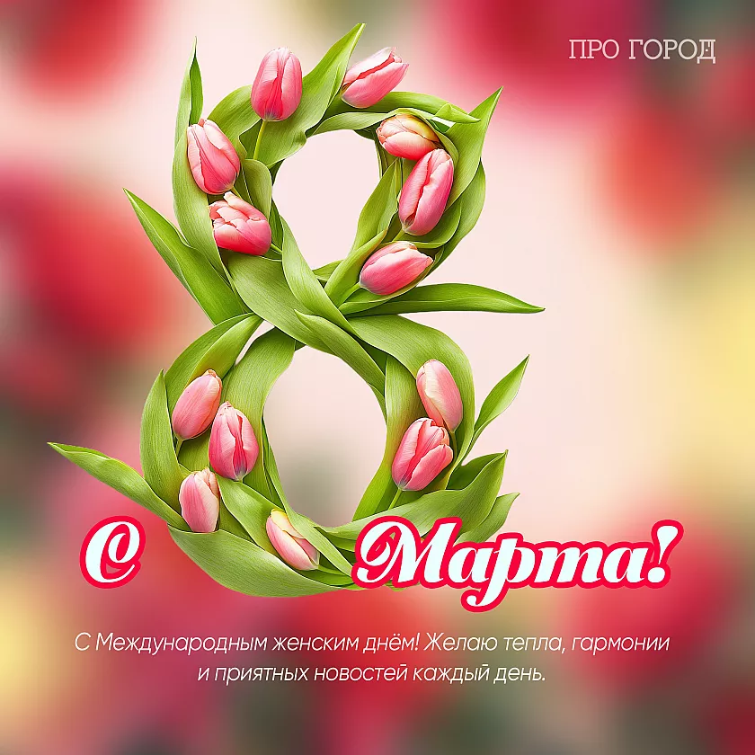 Чтобы не тратить время на поиски открыток, «Про Город» подготовил серию стильных праздничных изображений — их можно бесплатно скачать и отправить в мессенджере или опубликовать в соцсетях. На каждой открытке уже есть красивые поздравления, а оформление идеально подходит для того, чтобы поздравить подругу, маму, коллегу или девушку. Просто выберите ту, что подходит именно вашим близким, и поделитесь теплом весеннего праздника.