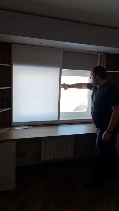 «Мы давно думали, как спасти спальню от яркого солнца: обычные шторы не помогали: утром все равно было очень светло. Поставили гармошку "Уют+" на блэкаут и дополнительно систему "Дуэт" в гостиной. В спальне теперь действительно можно устроить ночь среди дня – свет не пробивается, спать стало намного комфортнее. В гостиной весь день пользуемся мягким светом, а когда смотрим фильмы, закрываем плотную часть. Монтаж занял минимум времени, ничего лишнего по стенам не висит, выглядит аккуратно и современно. За полгода ни разу не пожалели, что выбрали именно такой формат», – говорит горожанка Светлана Смирнова.