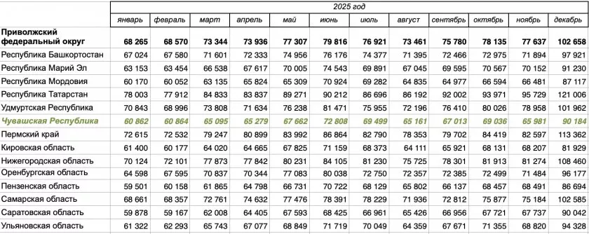 Росстат подвел итоги декабря 2025 года по среднемесячной номинальной зарплате по регионам России. Согласно данным, в этом месяце работники в Чувашии заработали более 90 тысяч рублей.