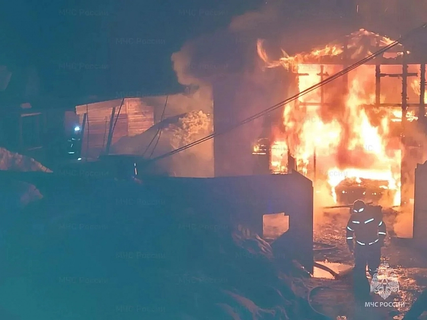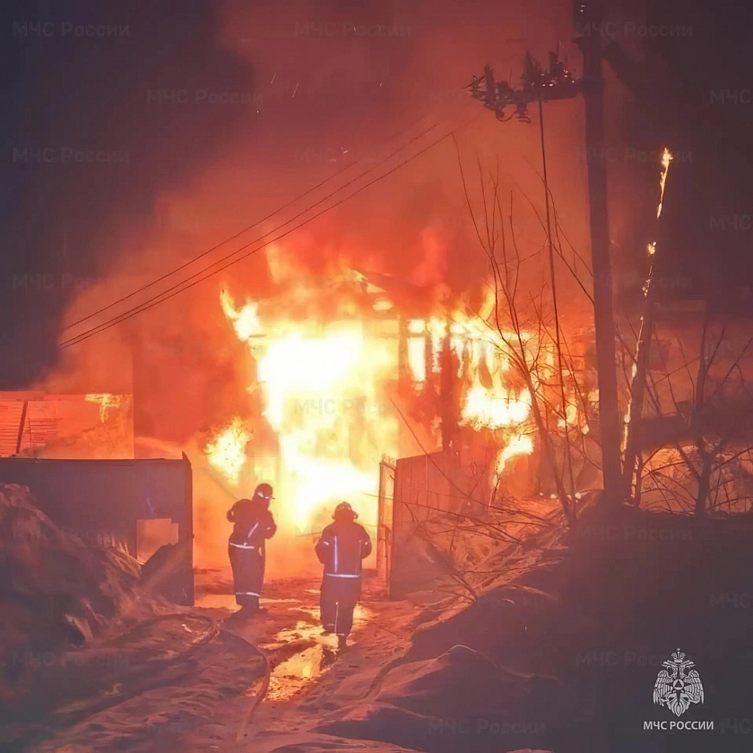По данным спасателей, сообщение о пожаре поступило поздно ночью. Площадь возгорания составила 96 квадратных метров, с огнем боролись около двух часов. К тушению привлекли 11 пожарных и три единицы техники МЧС России.