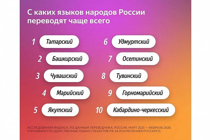 В "Яндекс Переводчике" доступно 18 языков народов России – от татарского до мансийского и абазинского. Чаще всего пользователи переводят с татарского, башкирского, чувашского, марийского и якутского. Об этом сообщили в пресс-службе сервиса "Российской газете".
