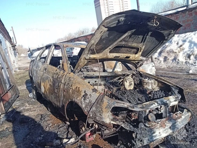 В Чебоксарах 31 марта на территории гаражного кооператива "Кукшумский-1" сгорела "Лада Приора". Пожар случился днем – огонь охватил автомобиль и перекинулся на вещи в гаражном боксе, рядом с которым стояла машина.
