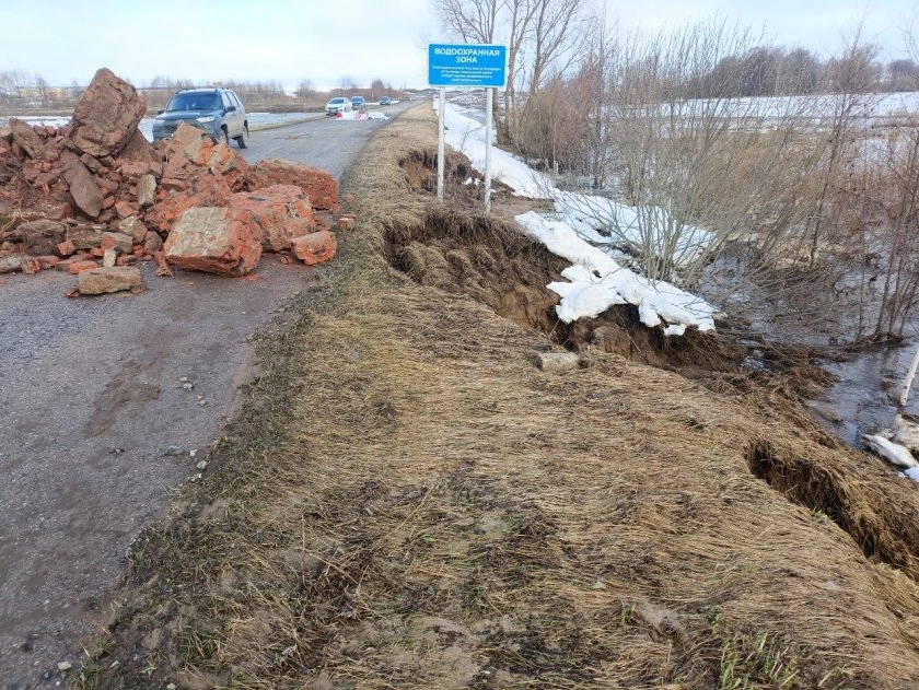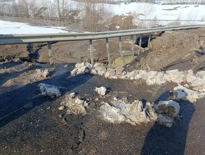 А вот в деревне Выла в Аликовском районе талая вода подмыла дорогу на мосту.