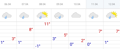 9 апреля дожди продолжатся, а к вечеру сменятся мокрым снегом. В ночь на пятницу в северной части республики начнет формироваться снежный покров – к утру 10 апреля он может достичь пяти сантиметров. Температура опустится ниже нуля, на дорогах ожидается сильный гололед. Холода продержатся до воскресенья включительно, мокрый снег возможен и на Пасху.