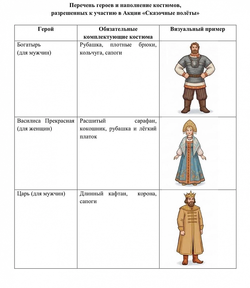 Авиакомпания «Победа» объявила необычную акцию — билеты по цене 1 рубль получат те, кто придёт на регистрацию в костюме героя русской народной сказки. В компании уточнили, что участвовать могут пассажиры, выбравшие любой recognizable образ — от лягушки‑царевны и Ивана‑царевича до Бабы-яги или богатыря. Главное условие — костюм должен быть узнаваемым и полностью соответствовать персонажу.
