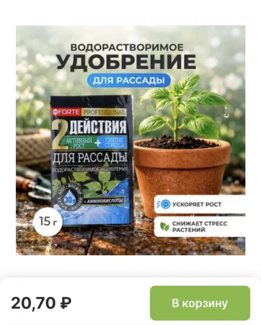 Если хотите повторить популярную схему, используйте тот же набор: универсальный грунт 10 л за 69 рублей, водорастворимое удобрение 50 г за 29–30 рублей и почвоулучшитель «5 в 1» за 133 рубля. Главное — соблюдать дозировки по инструкции и не подкармливать рассаду «на глаз». Такой комплект помогает без лишних затрат подготовить почву и обеспечить рассаде ровный, крепкий старт. А чтобы успеть купить нужные позиции, стоит следить за акцией «Все для рассады»: основное поступление товара идет с января и обновляется до конца апреля.