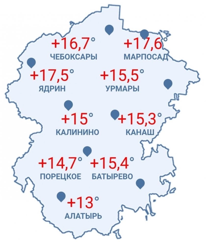 По данным синоптиков проекта "Погода в Чувашии", в некоторых городах республики температура была чуть ниже, но тоже было тепло. Например, в Урмарах воздух прогрелся до +15,5 градуса, а в Канаше до +15,3. Теплее, чем в Чебоксарах, было в Мариинском Посаде (+17,6) и в Ядрине (+17,5).