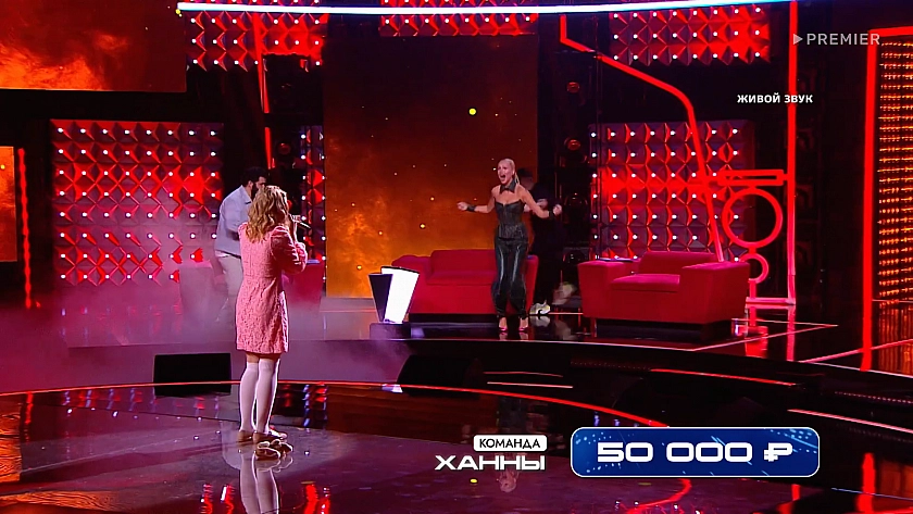 Соревновалась их команда с командой певицы Жасмин, комика Магомеда Муртазаалиева и юмористки Лизы Ющук.