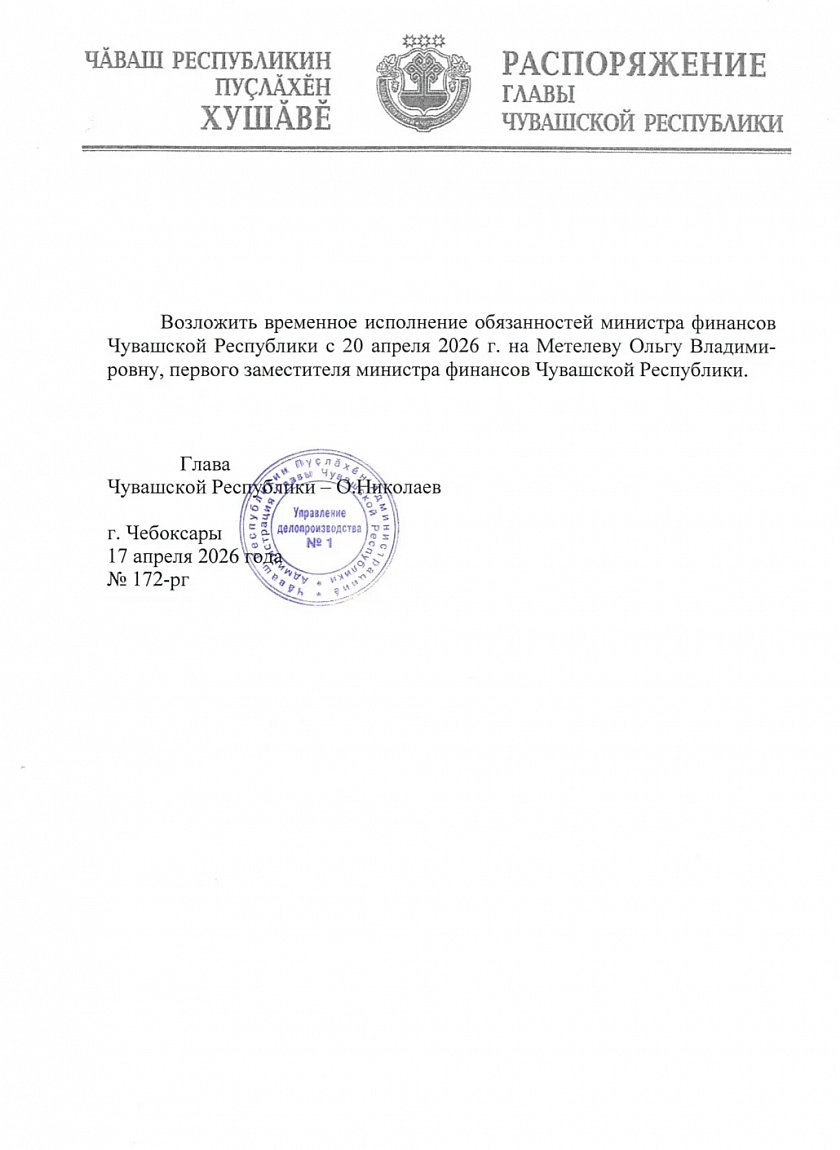 На место ушедшего с должности министра финансов Чувашии назначен новый человек
