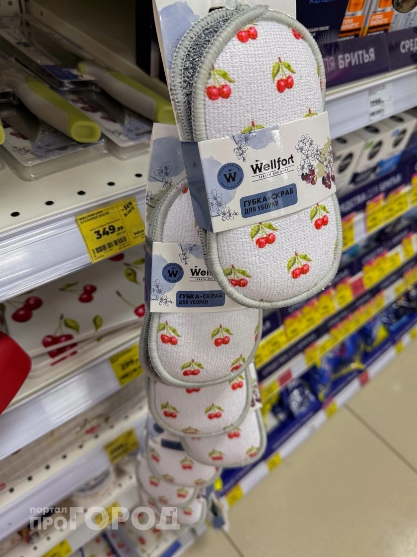 Не ограничились и только посудой — в коллекции есть губка‑скраб для уборки с мелким вишнёвым принтом. По сути это функциональная хозяйственная вещь, но за счёт рисунка она не выглядит скучной на раковине или в ванной. Такой аксессуар особенно оценят те, кто любит, чтобы даже в зоне уборки всё было аккуратно: когда губка и полотенца в одном стиле, кухня смотрится гораздо опрятнее.
