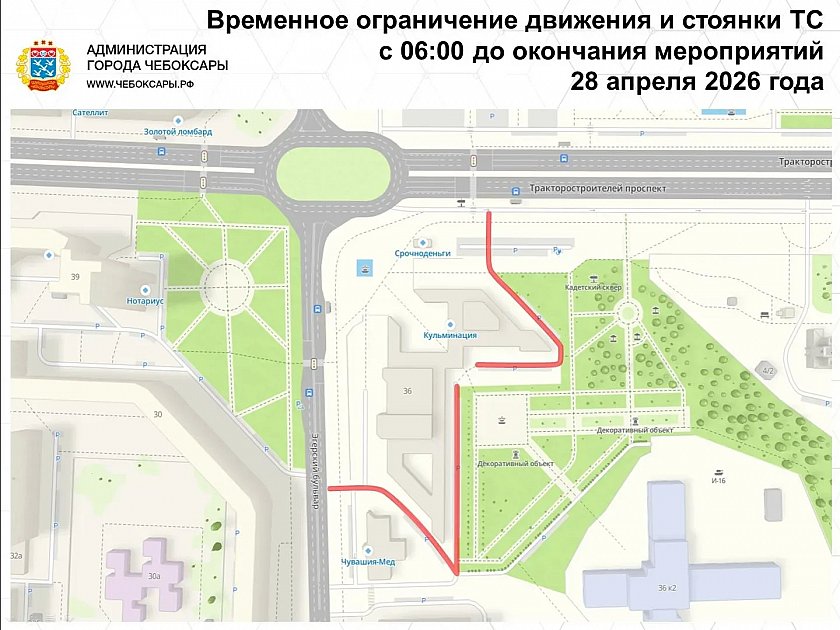 В Чебоксарах временно ограничат движение у ДК тракторостроителей. Это связано с проведением массовых мероприятий, сообщают власти города.