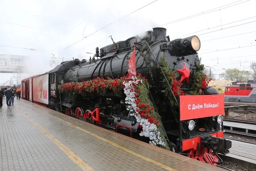 Состав отправился в путь к 81‑й годовщине Победы в Великой Отечественной войне: в голове поезда будут два паровоза серии Л, символизирующие бронированный поезд военных лет. К ним прицепят шесть платформ с образцами военной техники, а также два вагона‑теплушки с полевой кухней и экспозицией, посвященной быту и интерьеру военных лет.