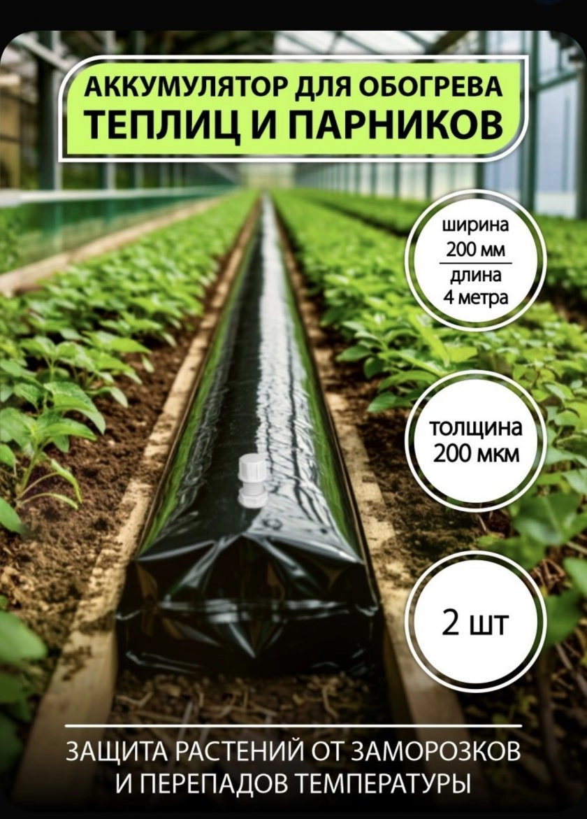 По сути это плотный черный полиэтиленовый рукав шириной около 20 сантиметров и длиной 4 метра, который заполняется водой и укладывается прямо между грядок вдоль рядов рассады. За 1000 рублей в наборе идет два таких мешка, то есть можно спокойно перекрыть стандартную теплицу 3×6: один рукав кладу между грядками с томатами, второй — к перцам и огурцам. Укладываю их по уровню, чтобы не было «горок», заливаю воду до упора, выпускаю воздух и плотно закручиваю концы, фиксируя пластиковыми хомутами или плотной веревкой. Дальше они просто лежат и делают свою работу, не требуя ни электричества, ни какого‑то ухода.