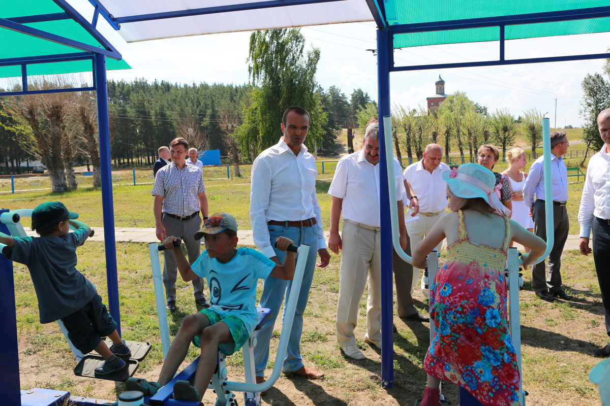 Далее колонна представителей властной среды и журналистов прибыла в поселок Сосновка, где все вместе оценили новую центральную детскую площадку.