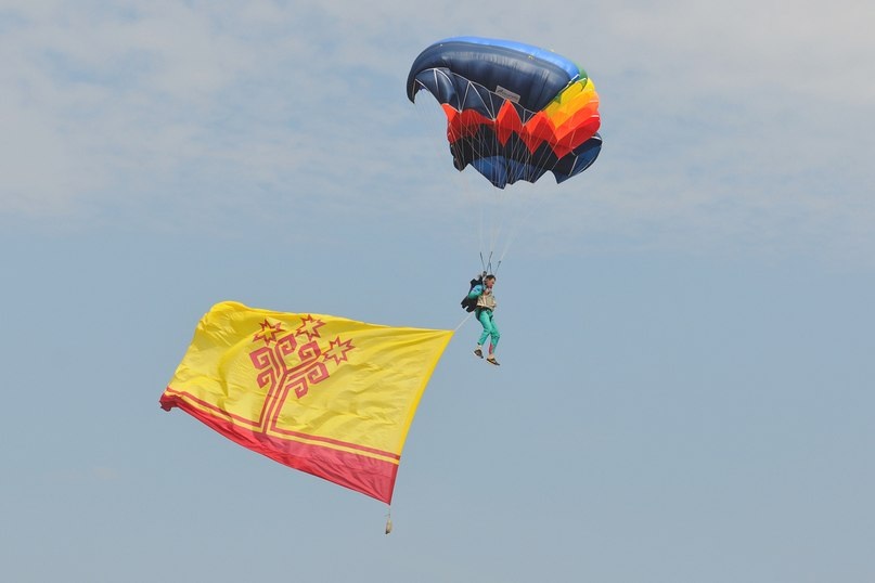 В 11.00 часов состоялись показательные выступления парашютистов. Инспекторы ГИМС обеспечивали безопасность мероприятия на акватории Волги. Десантники удивили чебоксарцев своим эффектным спуском с парашютом, держа в руках флаги России и Чувашии. Их появление сопровождалось аплодисментами и радостными приветствиями.