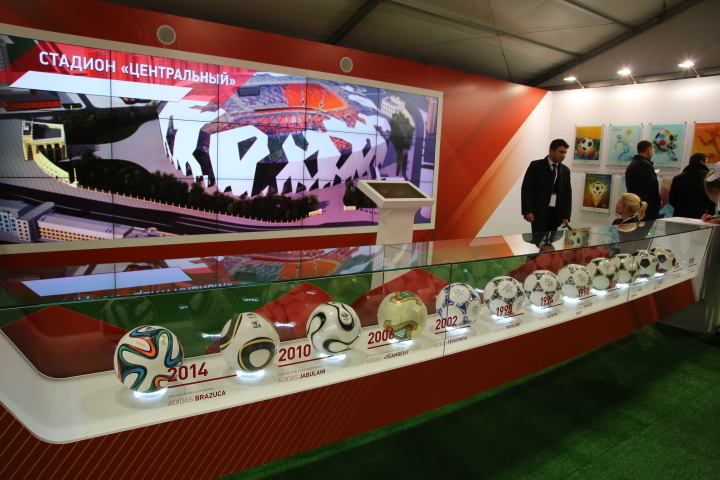 На интерактивном стенде, посвященном Чемпионату мира по футболу-2018 года, который пройдет в России гостям была представлена карта всех стадионов, принимающих игры мундиаля. На экран выводилась краткая информация о стадионе и ходе его строительства, а также небольшой презентационный ролик города, принимающего чемпионат.