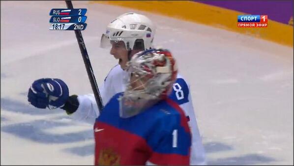 Но Илья Ковальчук не стал медлить и ответно увеличил счет- 3:1. На это автор первого гола Жига Еглич забил еще одну шайбу в наши ворота - 3:2.