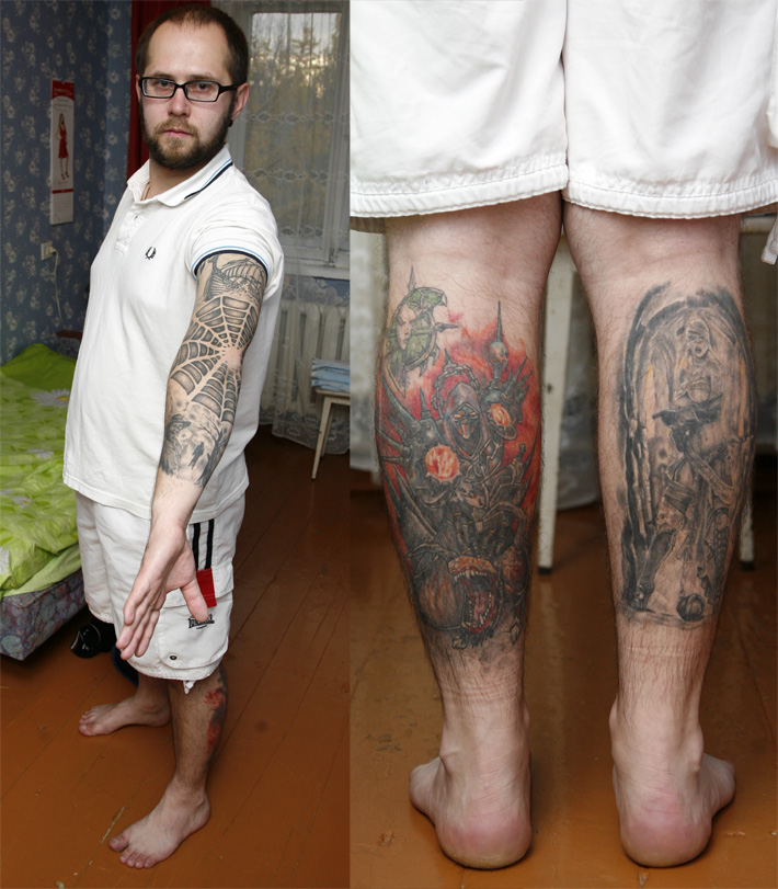 - Первую татуировку я сделал после школы : набил себе группу крови. Позже я расписал себе всю руку, - говорит Александр. - На на ногах у меня татуировка любимого персонажа из одной очень популярной компьютерной игры. Примерно через неделю сделаю тату на груди!