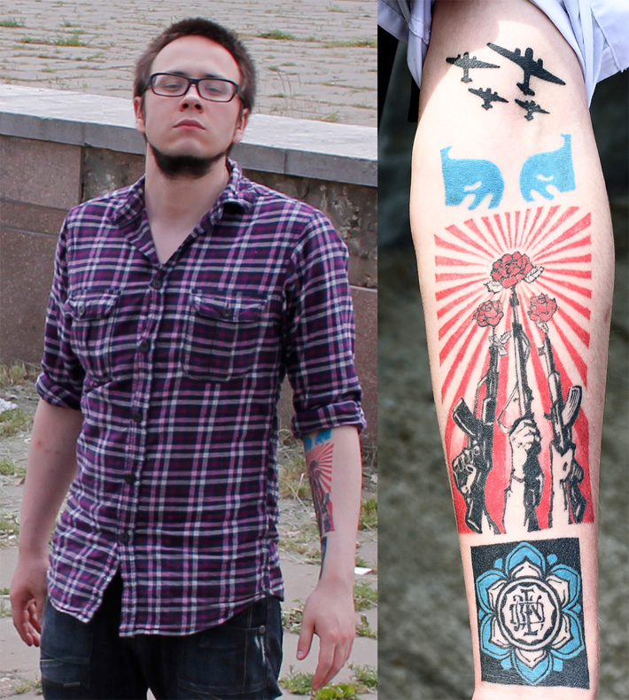 - В моей тату использованы элементы работ художника Шепарда Фейри, творчество которого меня восхищает. Его талант связан как с андеграундом, так и с массовой культурой, - говорит Иван. - Хотя сегодня о людях судят по их делам, татуировка - это не такой уж особенный поступок, чтобы по ней делать выводы о человеке.