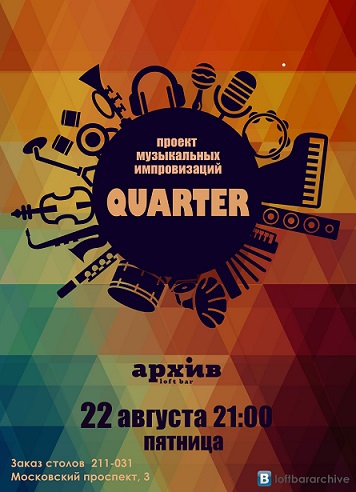 В пятницу, 22 августа, в в лофт-баре «Архив» проект музыкальных импровизаций «Quarter».