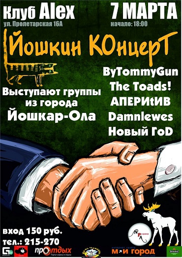 В субботу, 7 марта, в кафе «Alex» Йошкин концерт (группы из Йошкар-Олы).