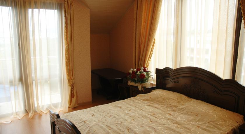 Гостевой дом расположен недалеко от аквапарка и всего в нескольких минутах ходьбы от пляжа. На территории к услугам отдыхающих мангал, открытый бассейн и свободный доступ к сети Интернет. Всем желающим предоставляется трехразовое питание. Стоимость проживания – от 1000 рублей в сутки (в разгар туристического сезона).