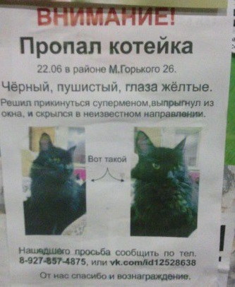 - Вот такое необычное объявление бросилось в глаза на остановке "Кооперативный институт", - рассказывает Настя Емельянова. - Кто-то очень хочет найти своего питомца.