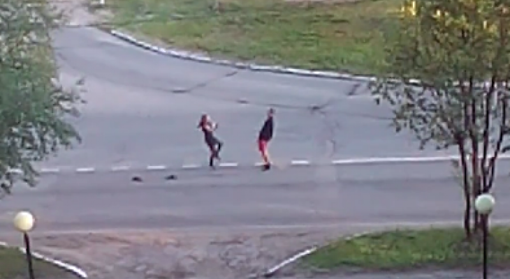 Суровая эжвинская молодежь: пьяная пара подралась посреди дороги (видео)
