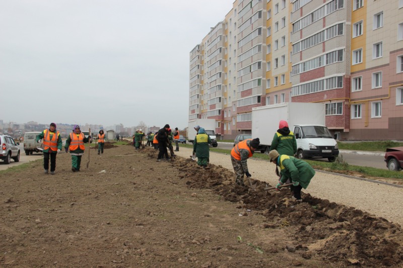 В Чебоксарах на проспекте Айги в 2 ряда высадят боярышник