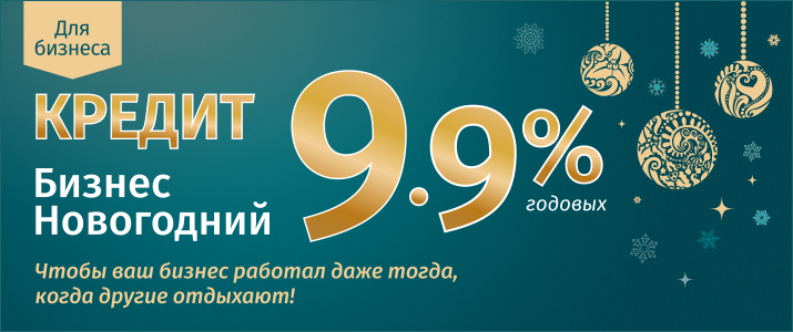 Банк «Хлынов» предлагает предпринимателям кредит «Бизнес Новогодний». Он поможет вашему бизнесу завершить 2017-й и встретить новый год на высоких оборотах. Тем более, что ставка по кредиту всего 9,9%. Кроме того, вы можете выбрать удобную для вас форму предоставления - невозобновляемую кредитную линию или овердрафт. А еще «Бизнес Новогодний» от банка «Хлынов» – это: