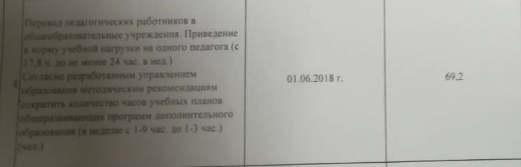 По словам Василия Туртушова, 1 марта, в четверг, преподавателям Дворца детского (юношеского) творчества раздали так называемую "Дорожную карту оптимизации", согласно которой к 1 июня 2018 года планируется довести численность педагогов до 69 человек.