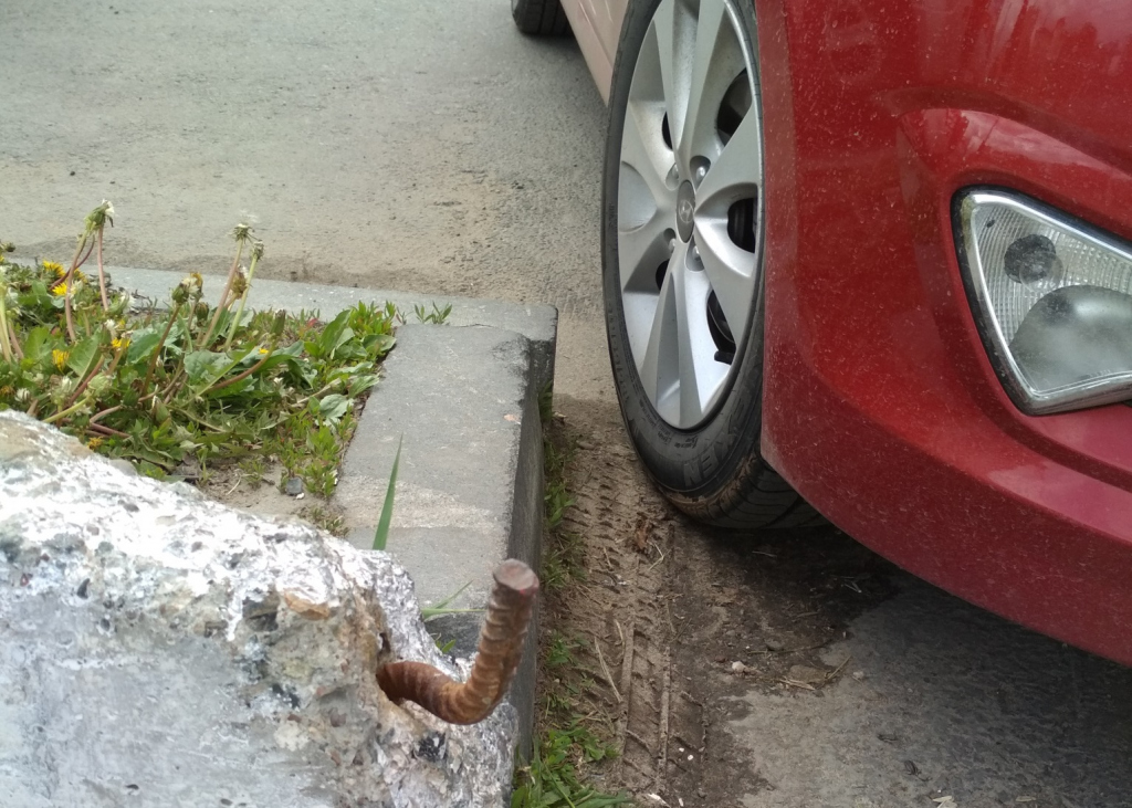 Выезжая с парковки, расположенной по адресу улица Винокурова, 51, повредил автомобиль, об арматуру, которая торчит на высоте 30 сантиметров из бордюра при выезде.
