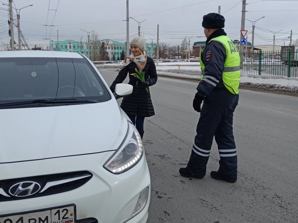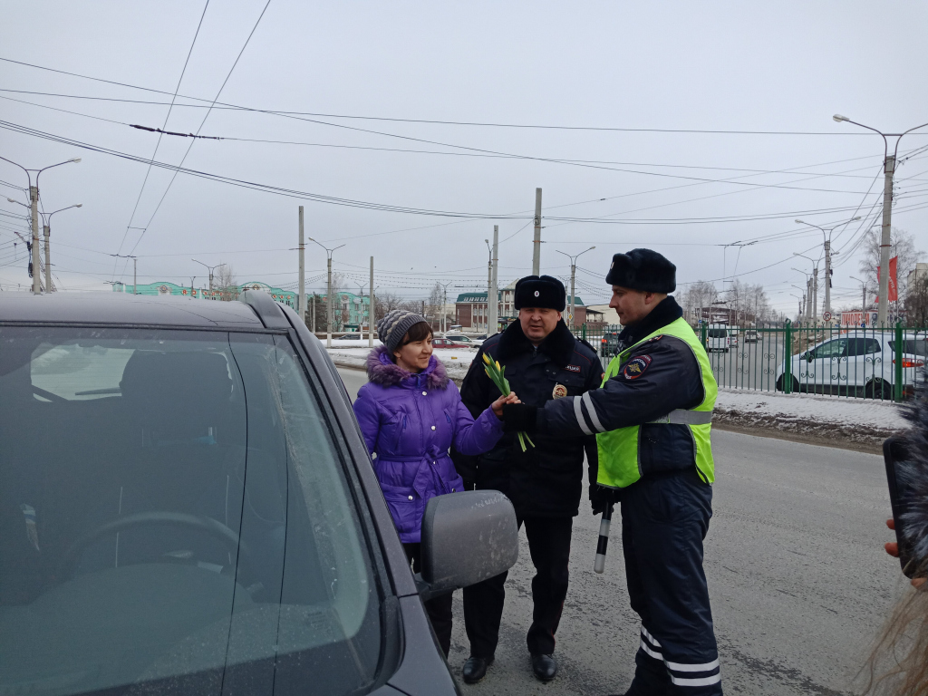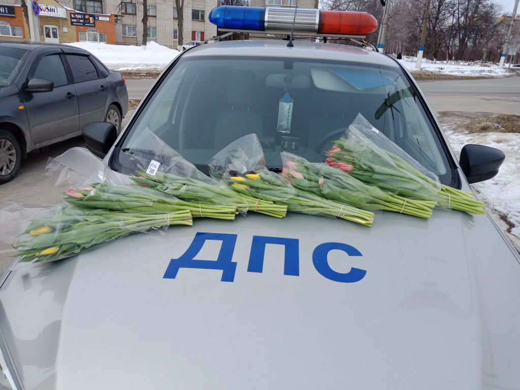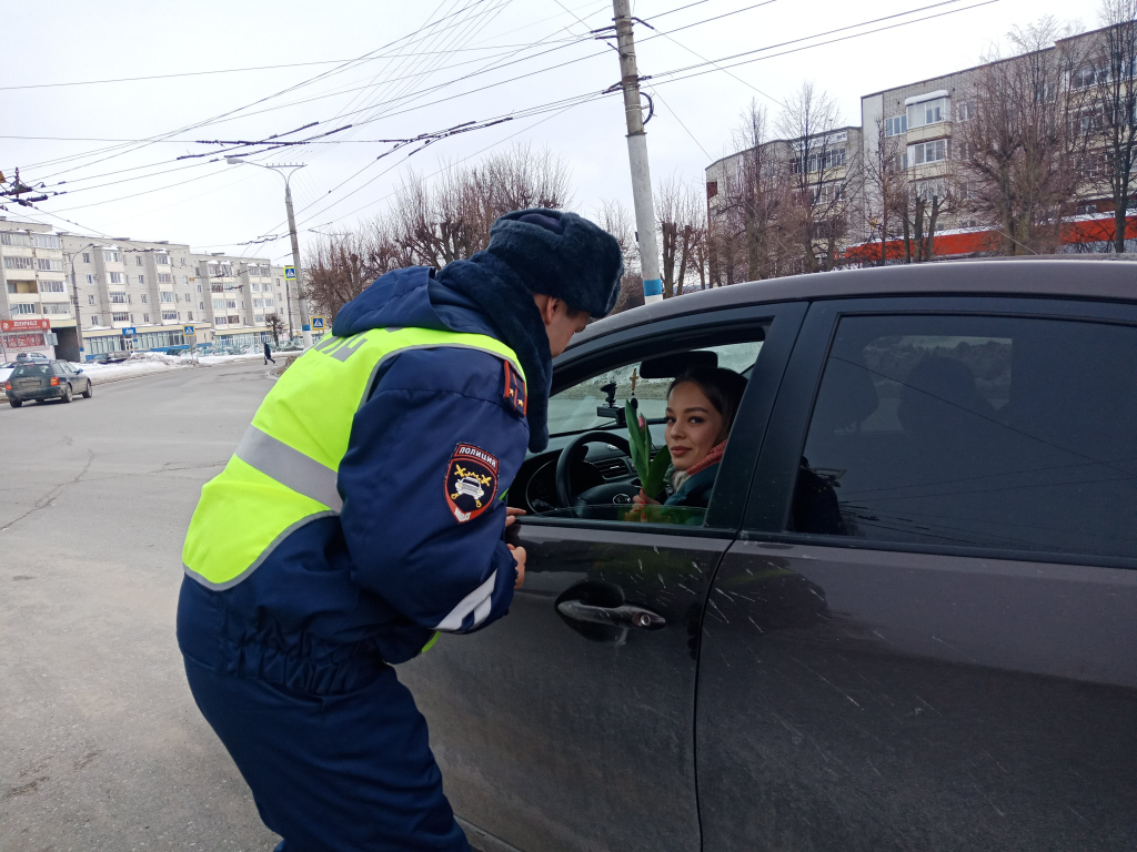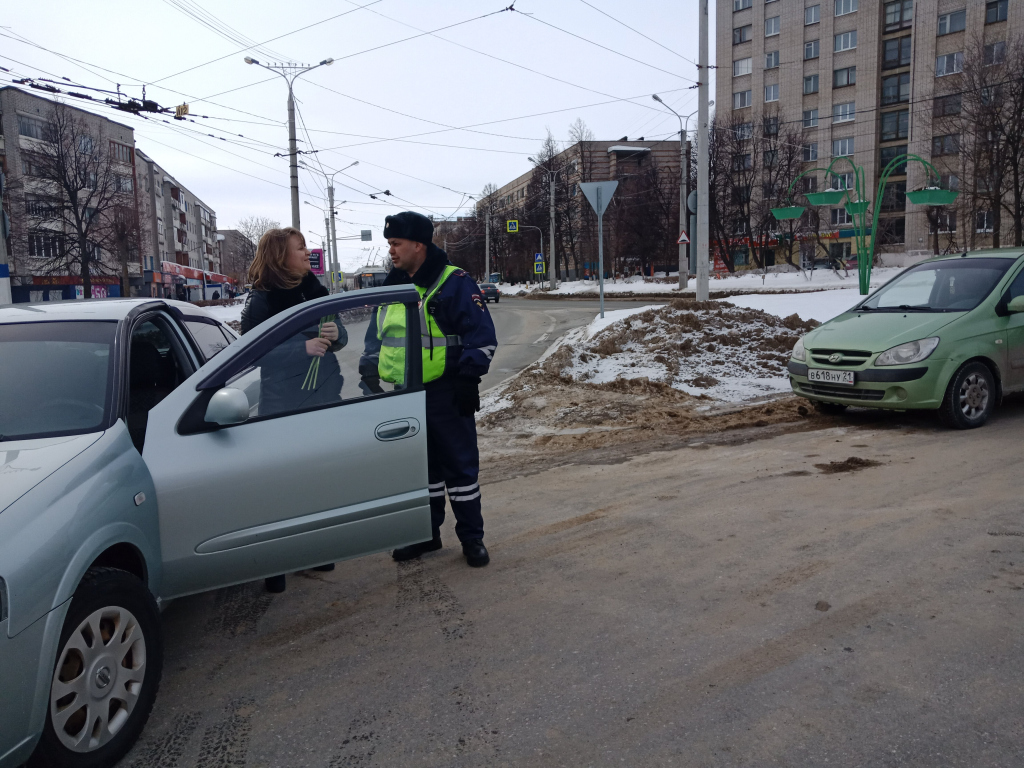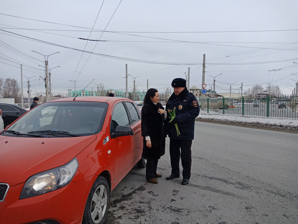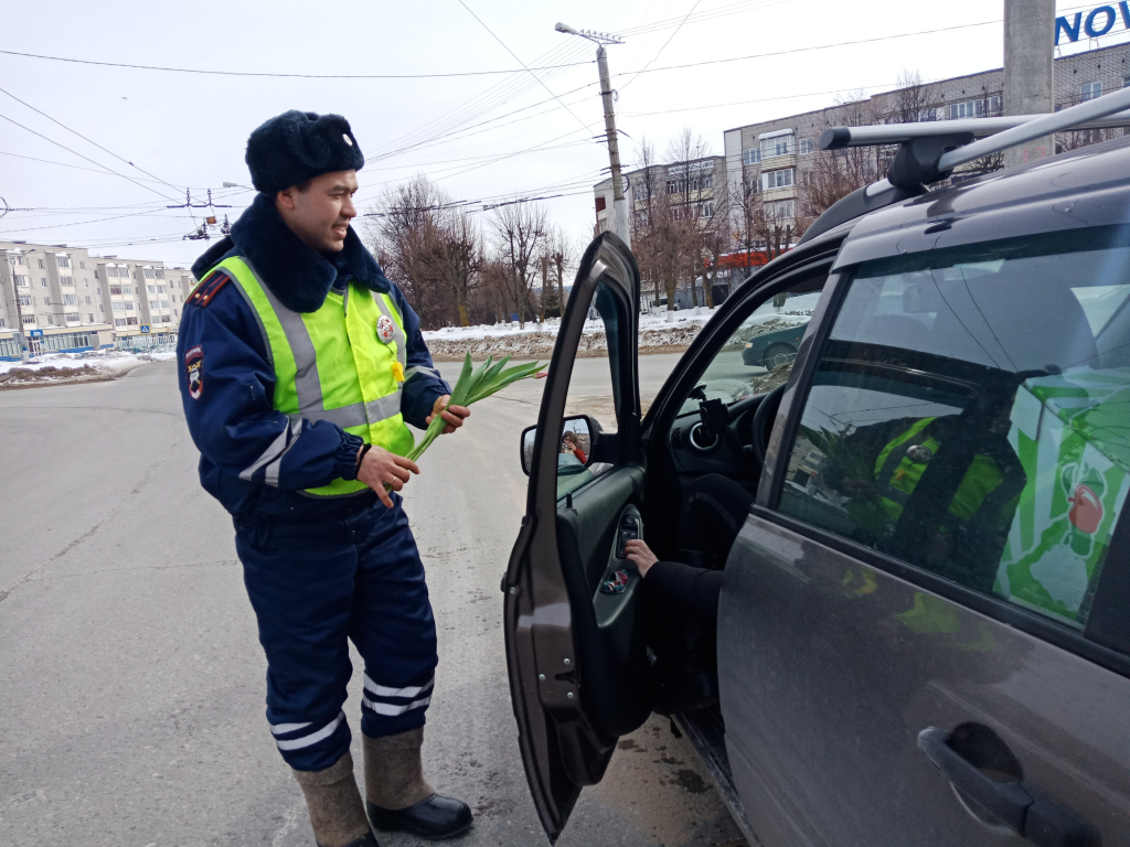 На дорогах Чувашии 8 марта дежурил «цветочный патруль»