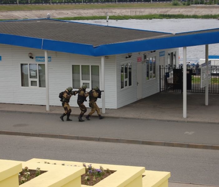 В столице Чувашии прошел завершающий этап тренировки на территории речного порта. По легенде, там где укрылись условные террористы, захватившие заложников. Об этом сообщают в пресс-службе МВД по Чувашии.