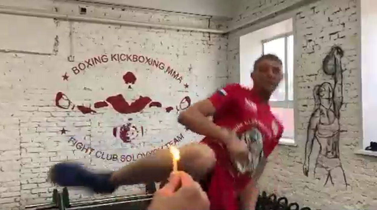 Чувашский кикбоксер решил присоединиться к знаменитому челленжду, запущенному американским бойцом смешанных боевых искусств Максом Холлоуэем. Однако при исполнении трюка вместо бутылки и пробки спортсмен использовал спички.