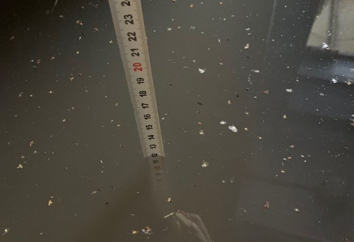 На этот раз уровень воды поднялся до 12-ти сантиметров. Однако жители дома утверждают, что это не предел.