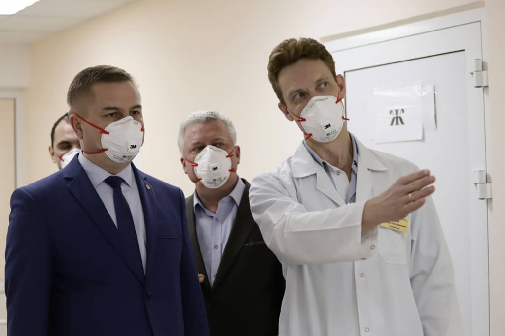 Сегодня же Владимир Степанов наведался в инфекционный корпус больницы, где совместно с главврачом БСМП, облачившись в защитный костюм, прошелся по палатам и пообщался с пациентами.