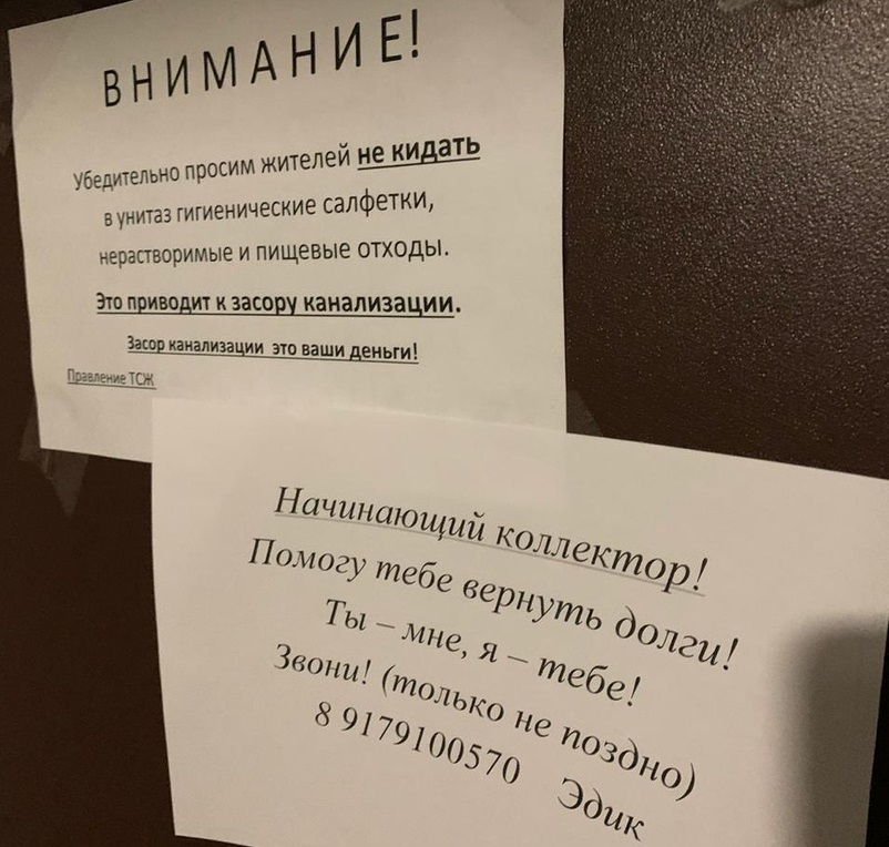Несколько дней назад на подъездах жилых домов в самых разных городах появились странные объявления от необычного специалиста по сбору долгов