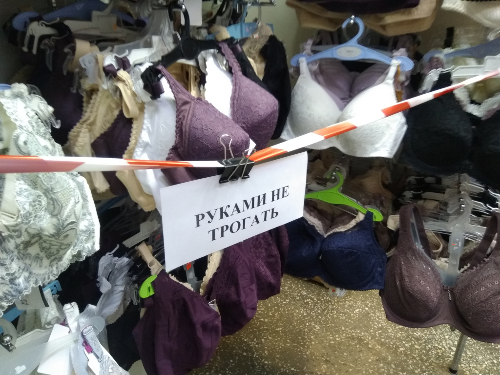Многие из продавцов поделились, что уже привыкают к новым условиям торговли. Каждый из них по-своему трактует изданные указы и требования властей республики. Например, продавец отдела женского белья Ираида Елисеева говорит, что покупателям нельзя примерять товары, а войти можно только в маске. По всему отделу висят предупреждения, что к товару прикасаться нельзя.