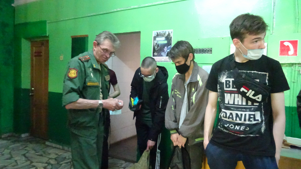 После инструктажа у призывников проверили вещи на наличие острых колюще-режущих предметов. Одному из парней в сумку заботливо положили нитки с иголкой. Пришлось изъять.