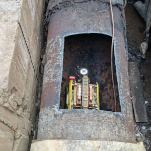 Обследование происходило внутри трубопроводов, куда помещался телеуправляемый диагностический комплекс. Передвигаясь, он обследовал сети с помощью видео- и магнитного модуля, выявляя коррозионные повреждения и деформации, а также определяя остаточную толщину стенки трубопровода. Данные выводились на экраны мониторов в передвижной лаборатории – они будут проанализированы специалистами для подготовки рекомендации по эксплуатации и ремонту.