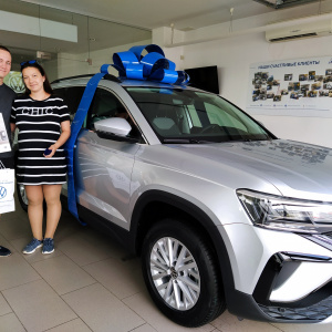 Рады поздравить молодую семью Торопцевых с приобретением стильного, мощного и совершенно нового Volkswagen Taos! Вадим и Надежда пришли в дилерский центр Фердинанд Моторс, увидели автомобиль и влюбились в него с первого взгляда. В модельном ряду Volkswagen Taos позиционируется как более компактный SUV, чем Tiguan. Его длина составляет 4417 мм, ширина – 1841 мм, высота – 1602 мм.
