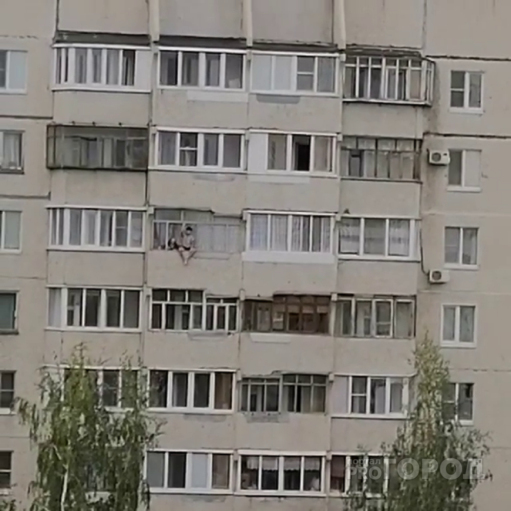 В Новочебоксарске ребенок залез на балконную раму и свесил ноги. Все происходило на высоте восьмого этажа. Об этом сообщил очевидец.