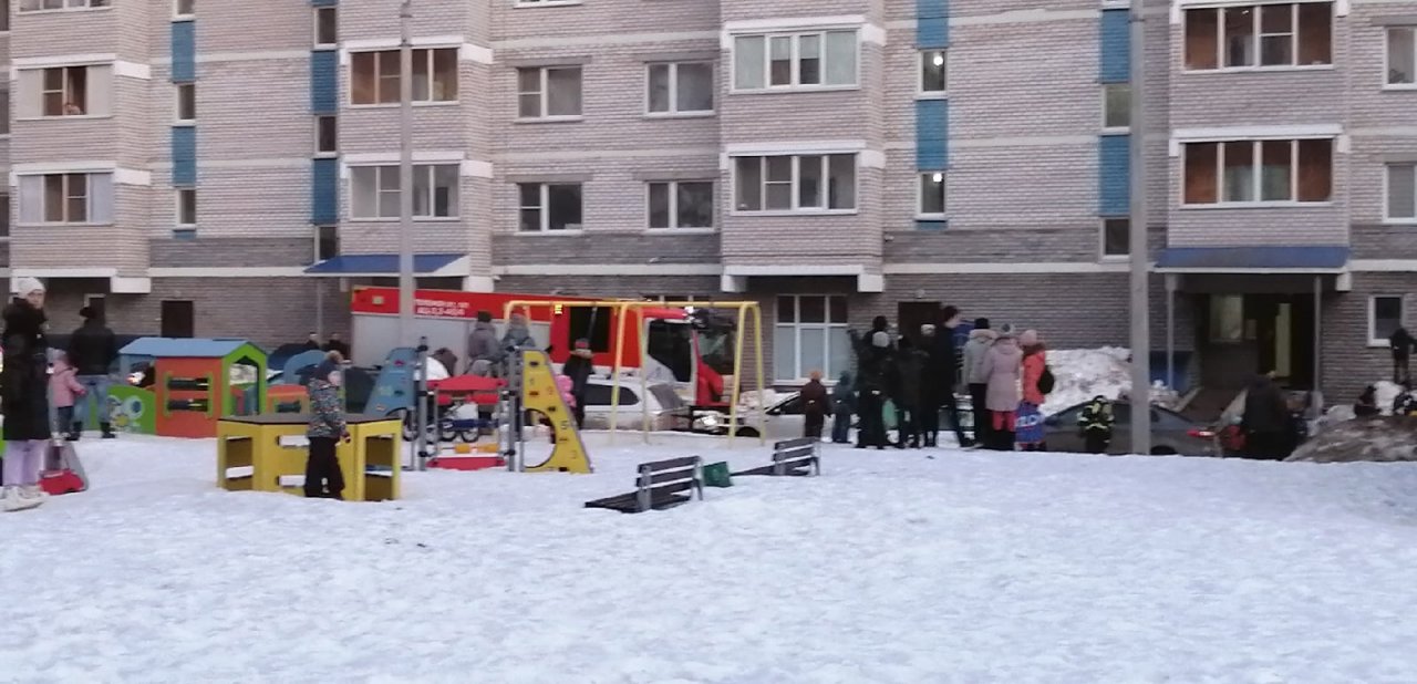 Происходящее попало на камеру очевидца, на видео видно, что спасатели продвигаются по двору. Горожане наблюдают за происходящим. Затем пожарные зашли в подъезд.