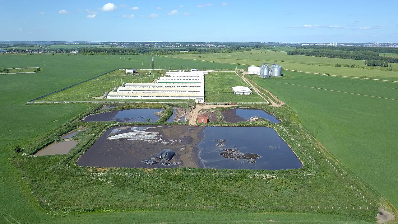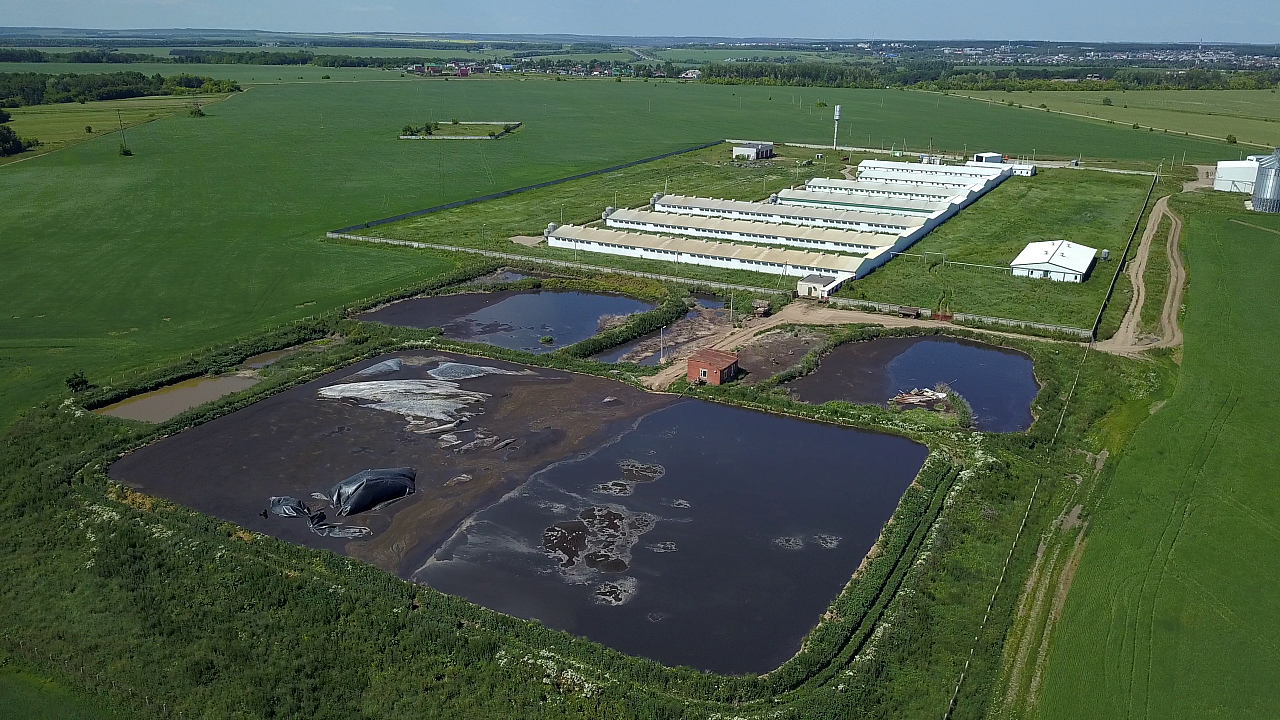 Активисты использовали беспилотник, чтобы облететь территорию свинофермы. На полученном видео видно, что на территории комплекса имеется несколько открытых водоемов.