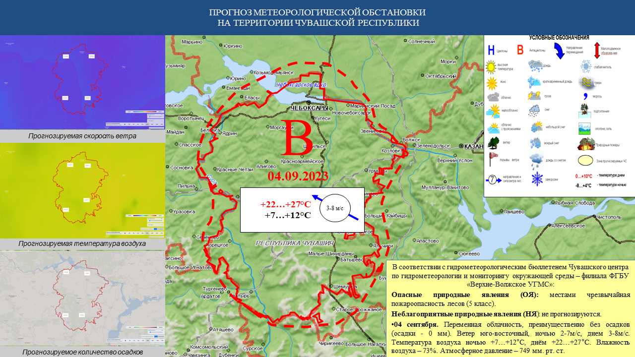 Синоптики Чувашии выпустили прогноз погоды на 4 сентября. Прогноз размещен на сайте МЧС по Чувашской Республике.