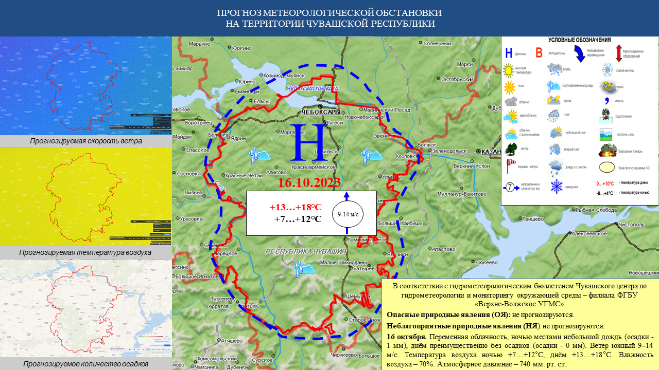 Согласно прогнозу синоптиков,16 октября в Чувашии не ожидаются неблагоприятные и опасные природные явления. Ожидается переменная облачность. Ночью местами пройдет небольшой дождь, а днем преимущественно без осадков.